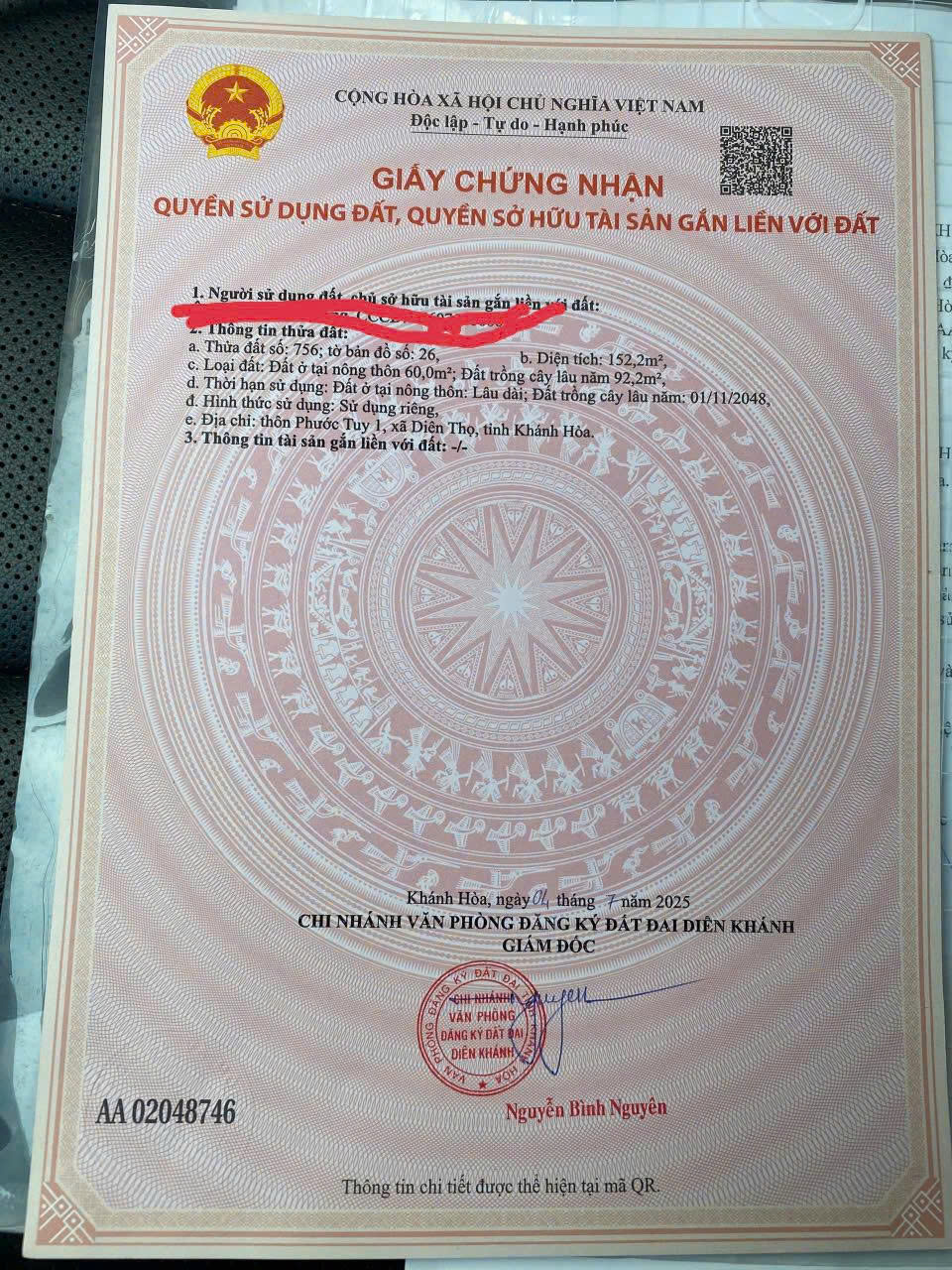 CHÍNH CHỦ BÁN GẤP ĐẤT NỀN , GIÁ TỐT TẠI XÃ DIÊN THỌ , DIÊN KHÁNH, KHÁNH HÒA