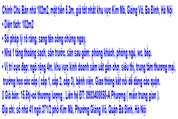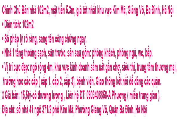 Chính Chủ Bán nhà 102m2, mặt tiền 5.3m, giá tốt nhất khu vực Kim Mã, Giảng Võ, Ba Đình, Hà Nội