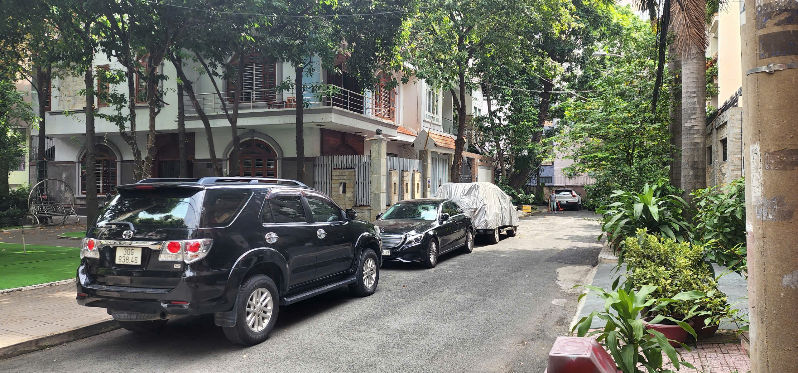 Đường rộng, có chỗ đậu xe ô tô , cây xanh thoáng mát , không khí trong lành