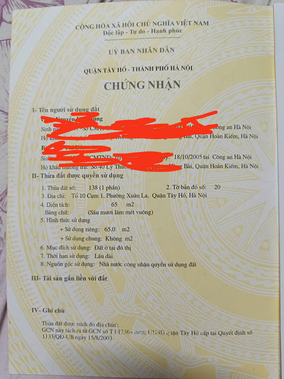 * Diện tích: 65m² Mặt tiền 5m