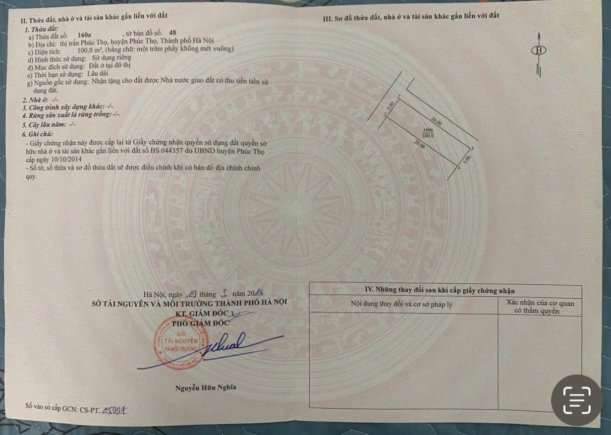 * CHÍNH CHỦ CẦN BÁN 100M² ĐẤT Ở - TRUNG TÂM THỊ TRẤN PHÚC THỌ, HÀ NỘI