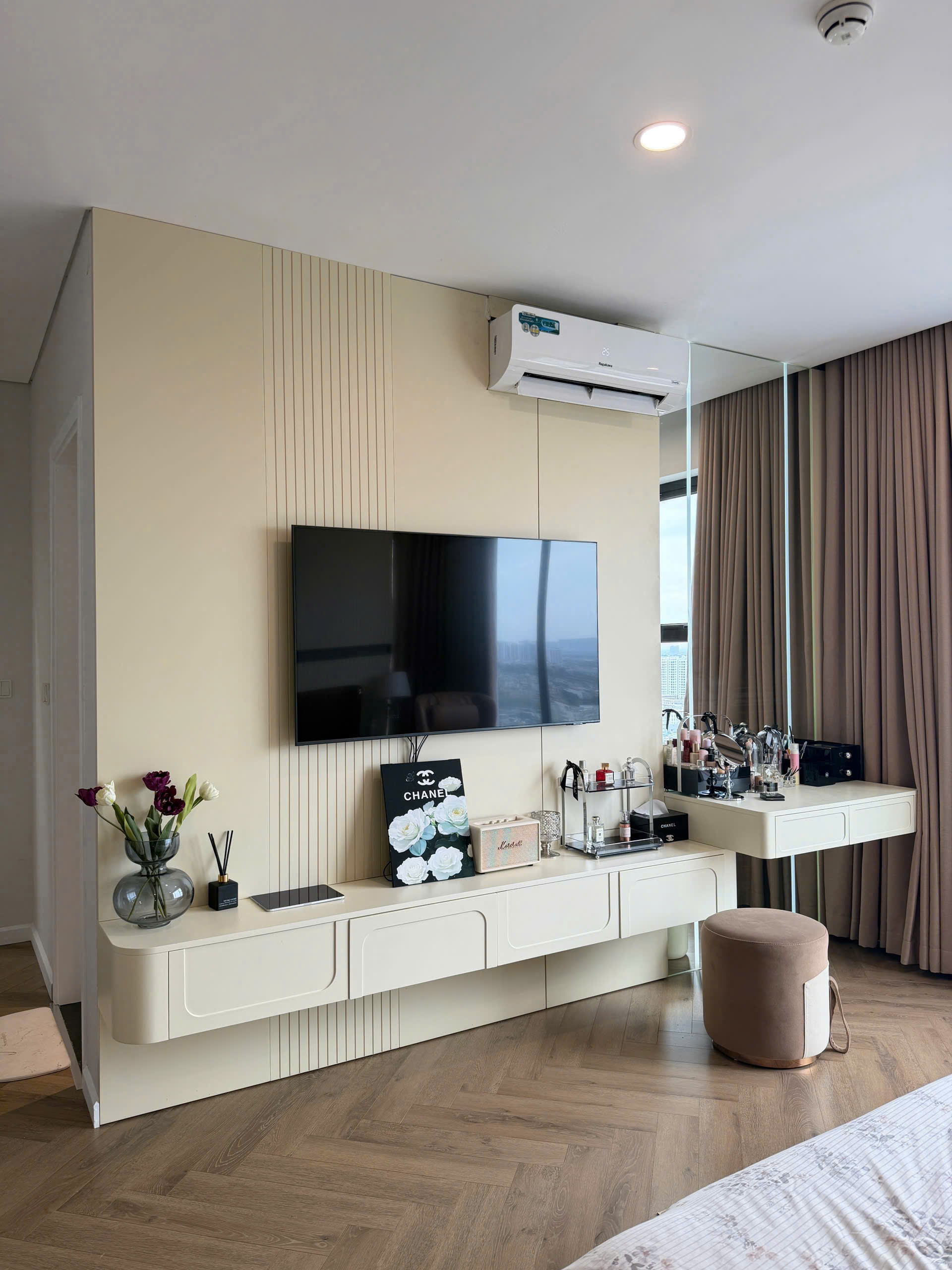 - Căn hộ nằm ở tầng 24, đã được trang bị đầy đủ Nội thất cao cấp như hình, có hệ thống rèm cửa tự động.