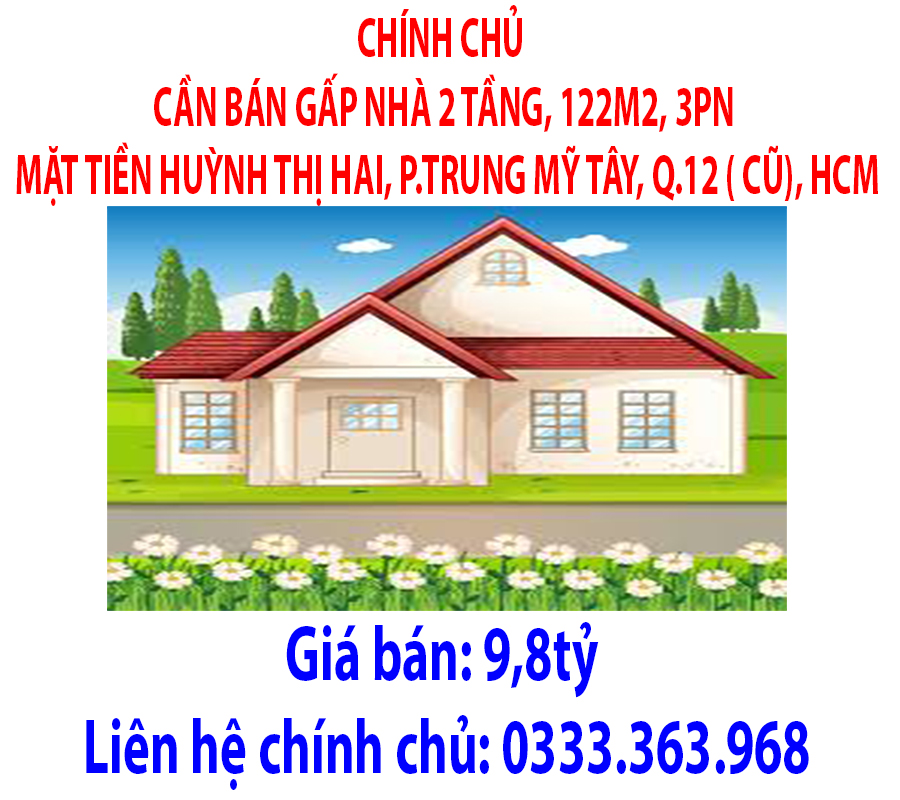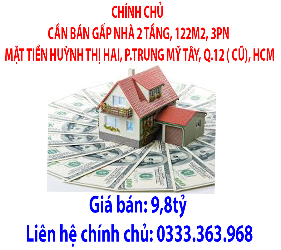 CHÍNH CHỦ CẦN BÁN GẤP NHÀ 2 TẦNG, 122M2, 3PN MẶT TIỀN HUỲNH THỊ HAI, P.TRUNG MỸ TÂY, Q.12 ( CŨ), HCM