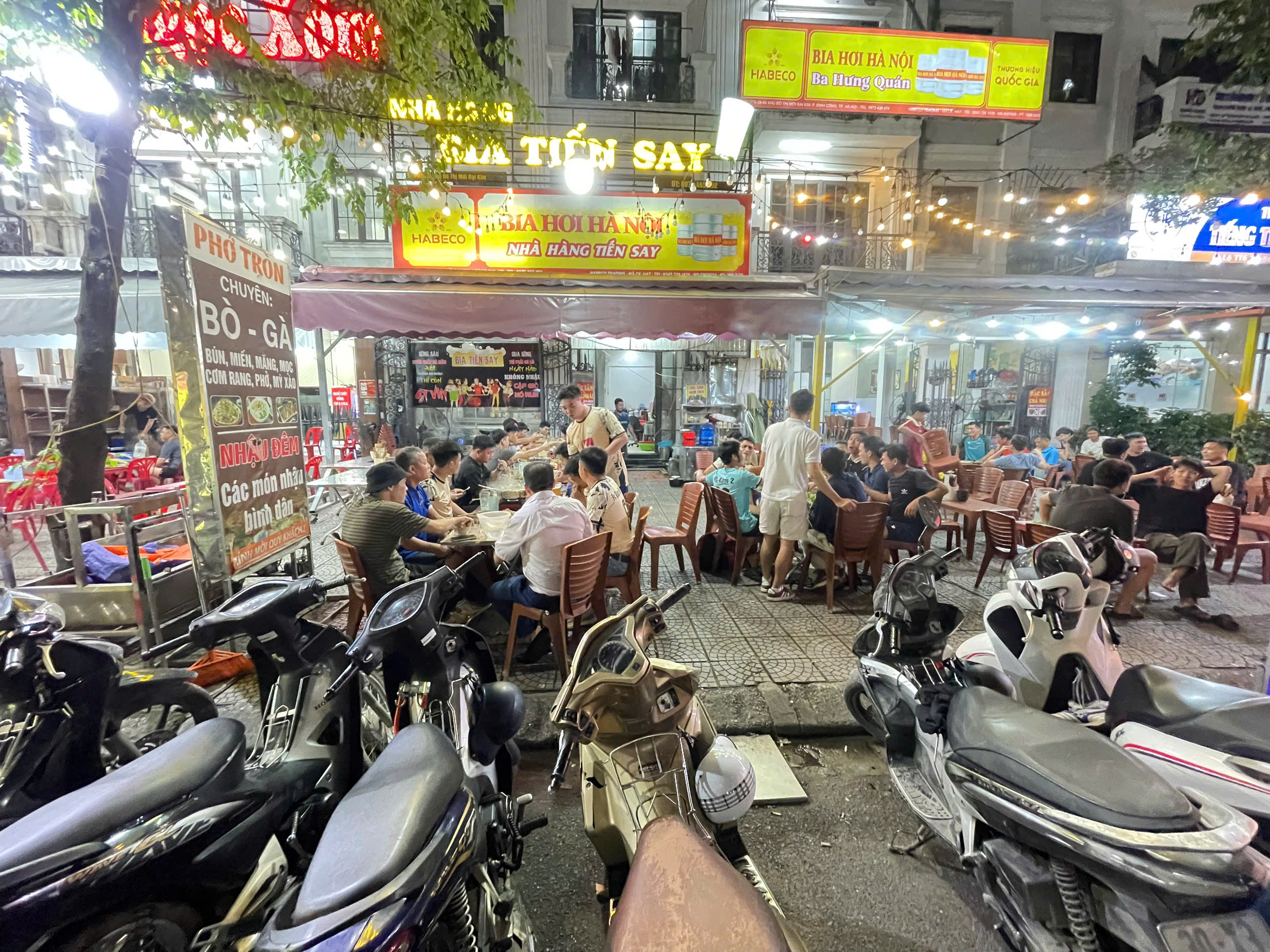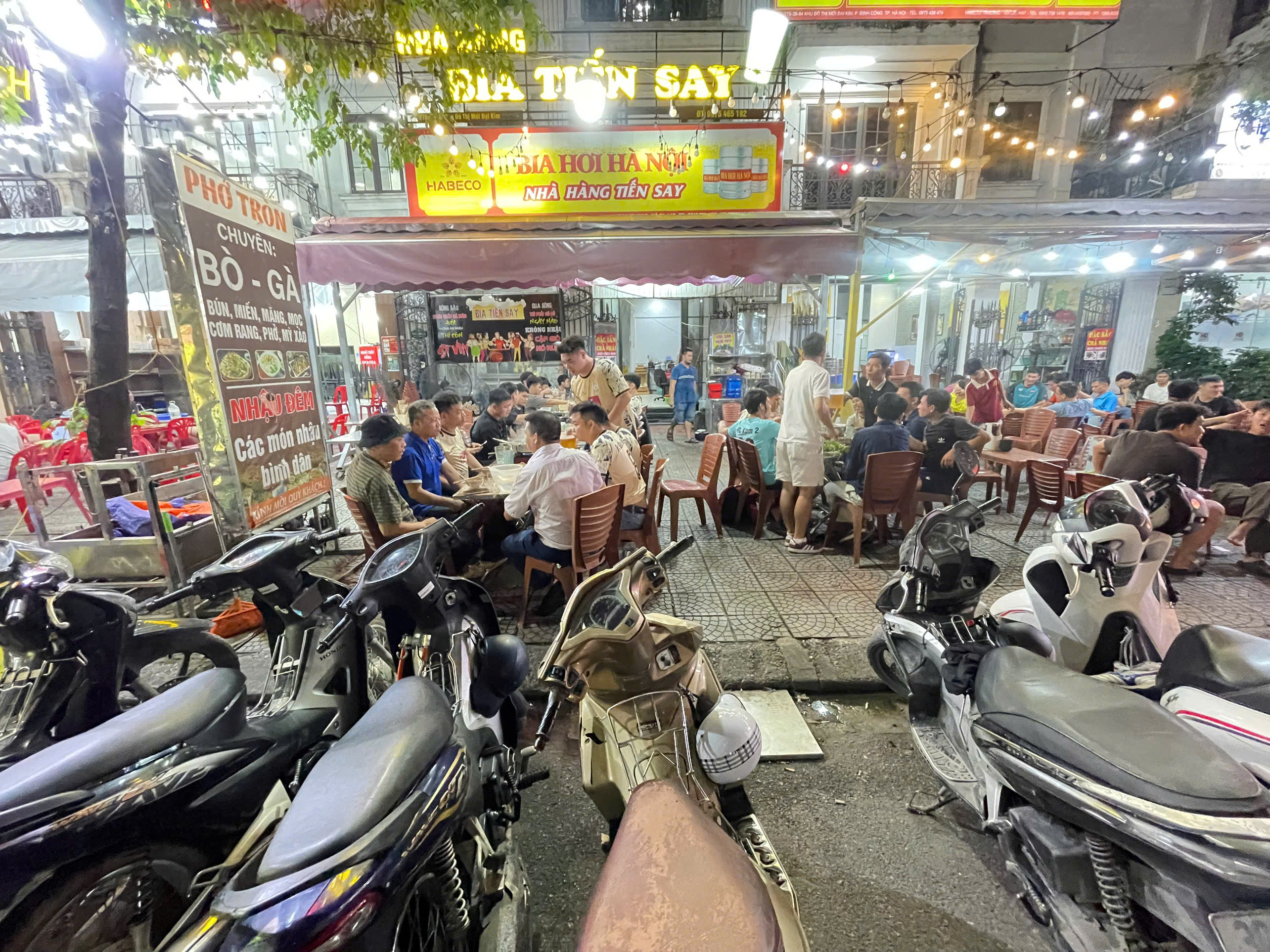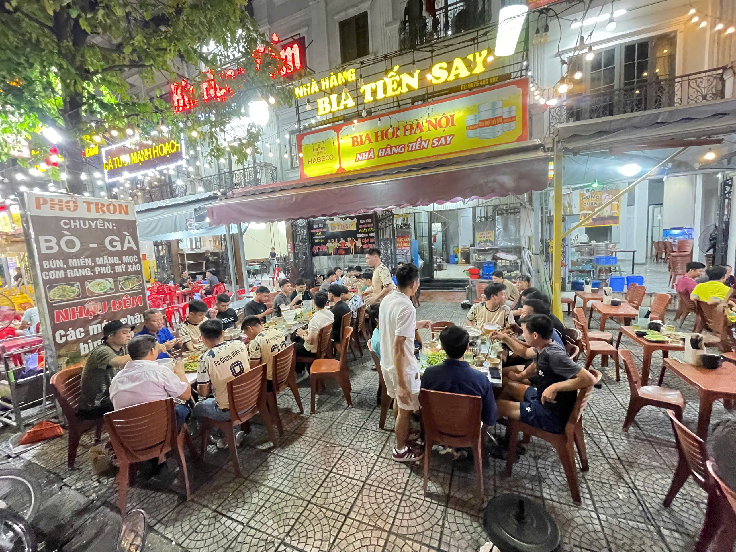 – Tối kinh doanh bia – khu phố ẩm thực đông đúc, khách cực kỳ nhộn nhịp.