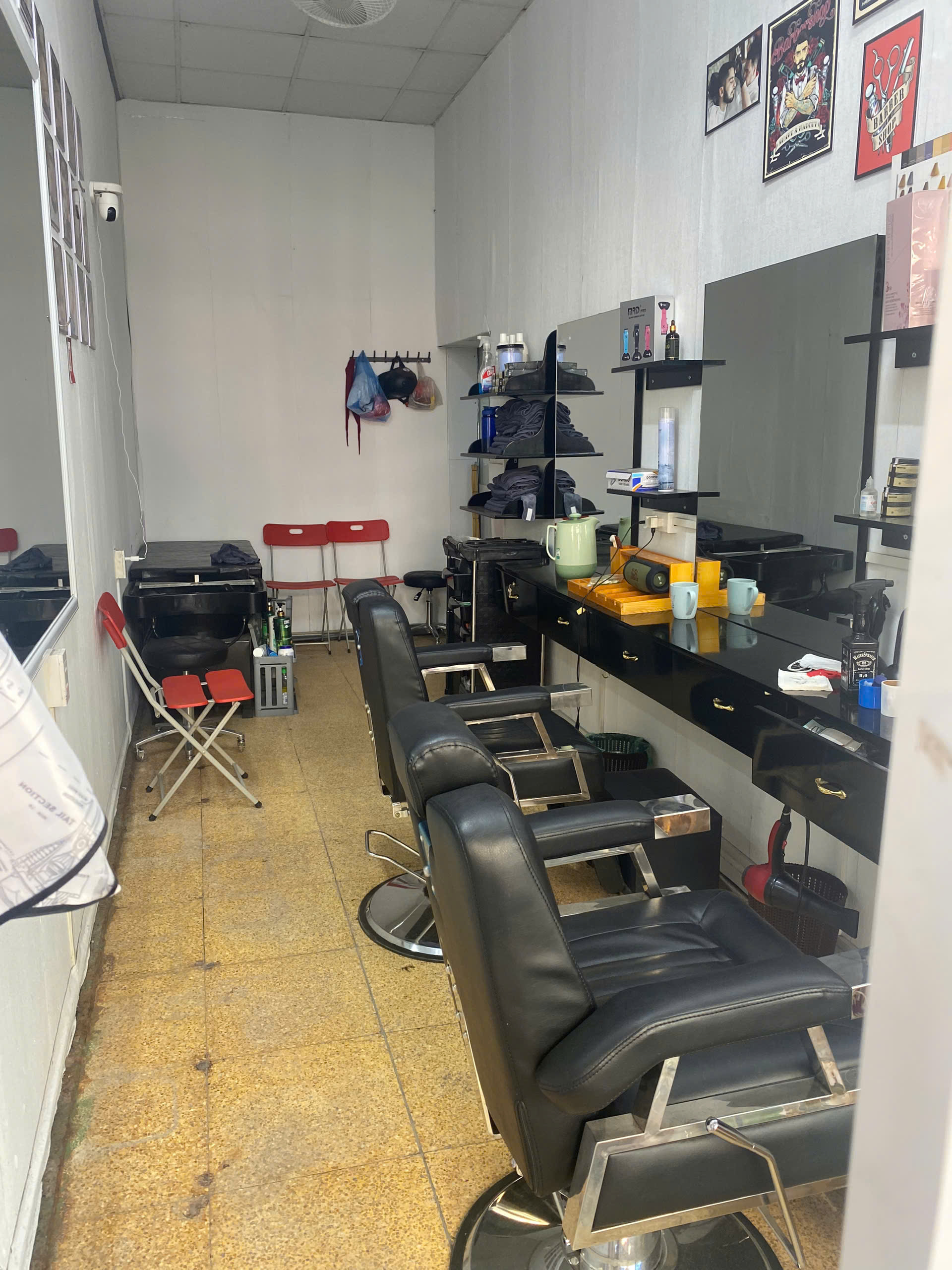- Diện tích thoáng, đầy đủ trang thiết bị: ghế cắt, giường gội, điều hòa, tủ để đồ, dụng cụ làm tóc và toàn bộ cơ sở vật chất đang sử dụng.
