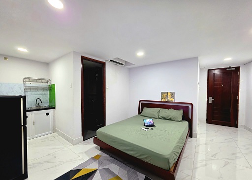 -Căn hộ mới, sạch đẹp, đầy đủ nội thất: giường nệm, tủ quần áo, tivi, máy lạnh, tủ lạnh, bếp và WC riêng.-Tòa nhà trang bị thang máy, hệ thống PCCC, camera an ninh 24/7, máy giặt chung, chỗ giữ xe miễn phí.
