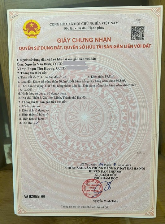 + Diện tích: 89.8m², mặt tiền 5m - đất vuông vức, dễ xây dựng.