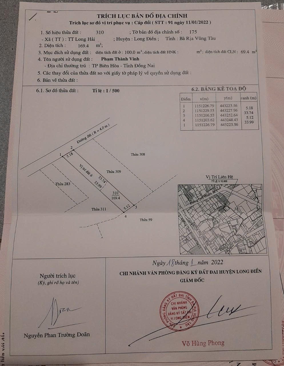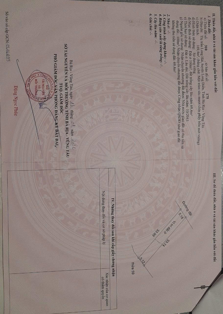 ĐẤT CHÍNH CHỦ - VỊ TRÍ ĐẸP Gần Đường 3/2 TT Long Hải, Long Điền - Bà Rịa Vũng Tàu