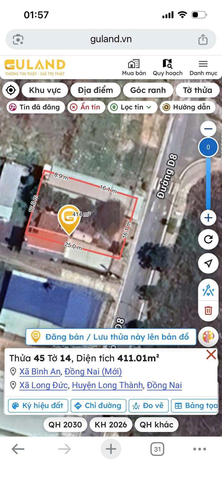 - Diện tích: 410,9m² (80m² thổ cư)