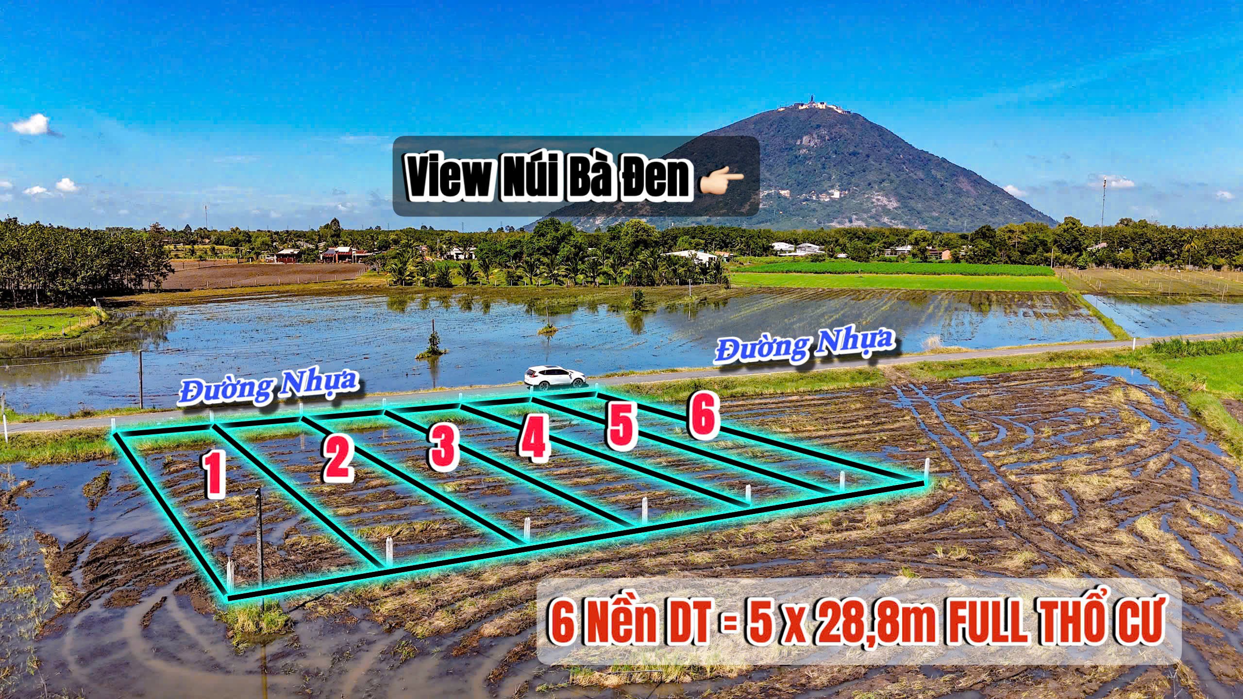 Mặt tiền đường nhựa view trực diện núi bà đen full thổ cư 140m2 sẵn sổ ra thị trấn DMC chỉ vài phút