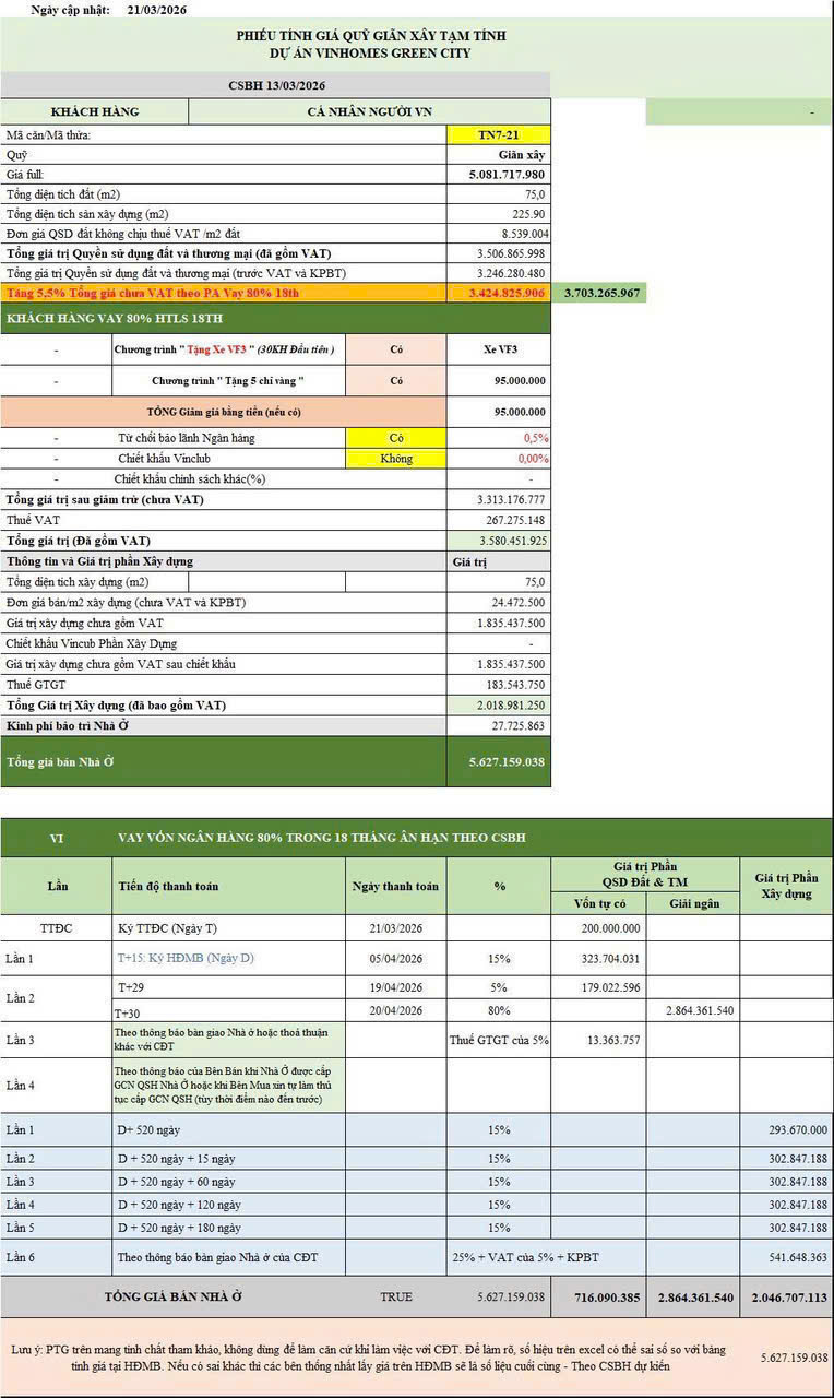 ♦️Tổng giá nếu dùng hỗ trợ ngân hàng: 5,627 tỷ