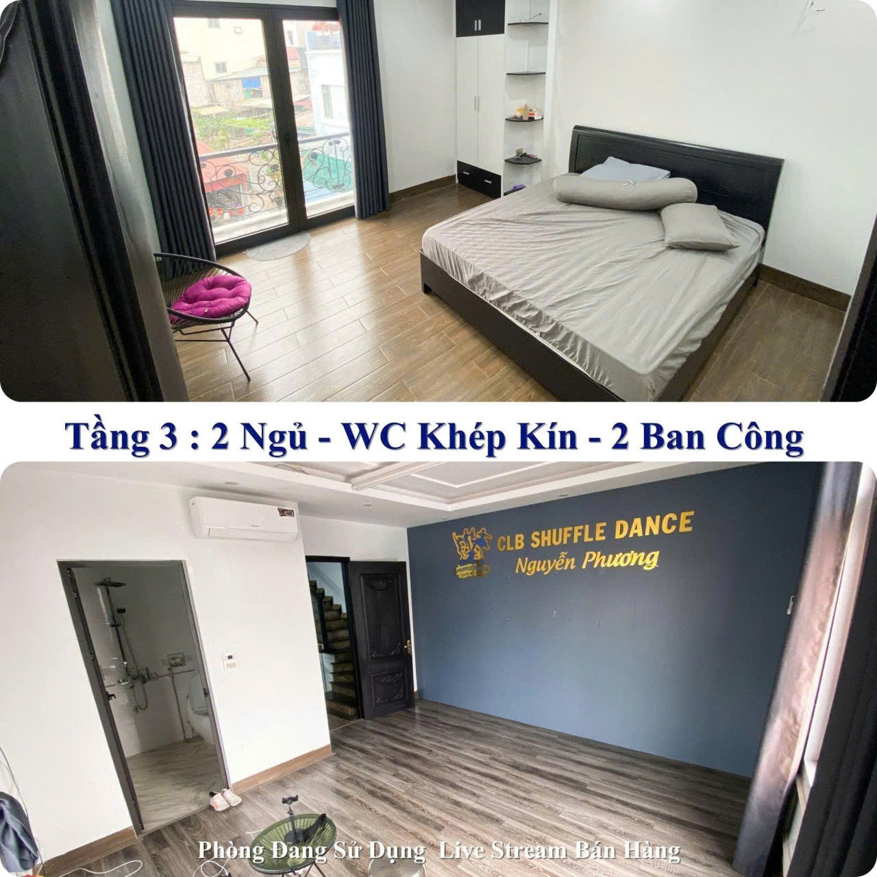 Tầng 3: 2 phòng ngủ WC khép kín, 2 ban công