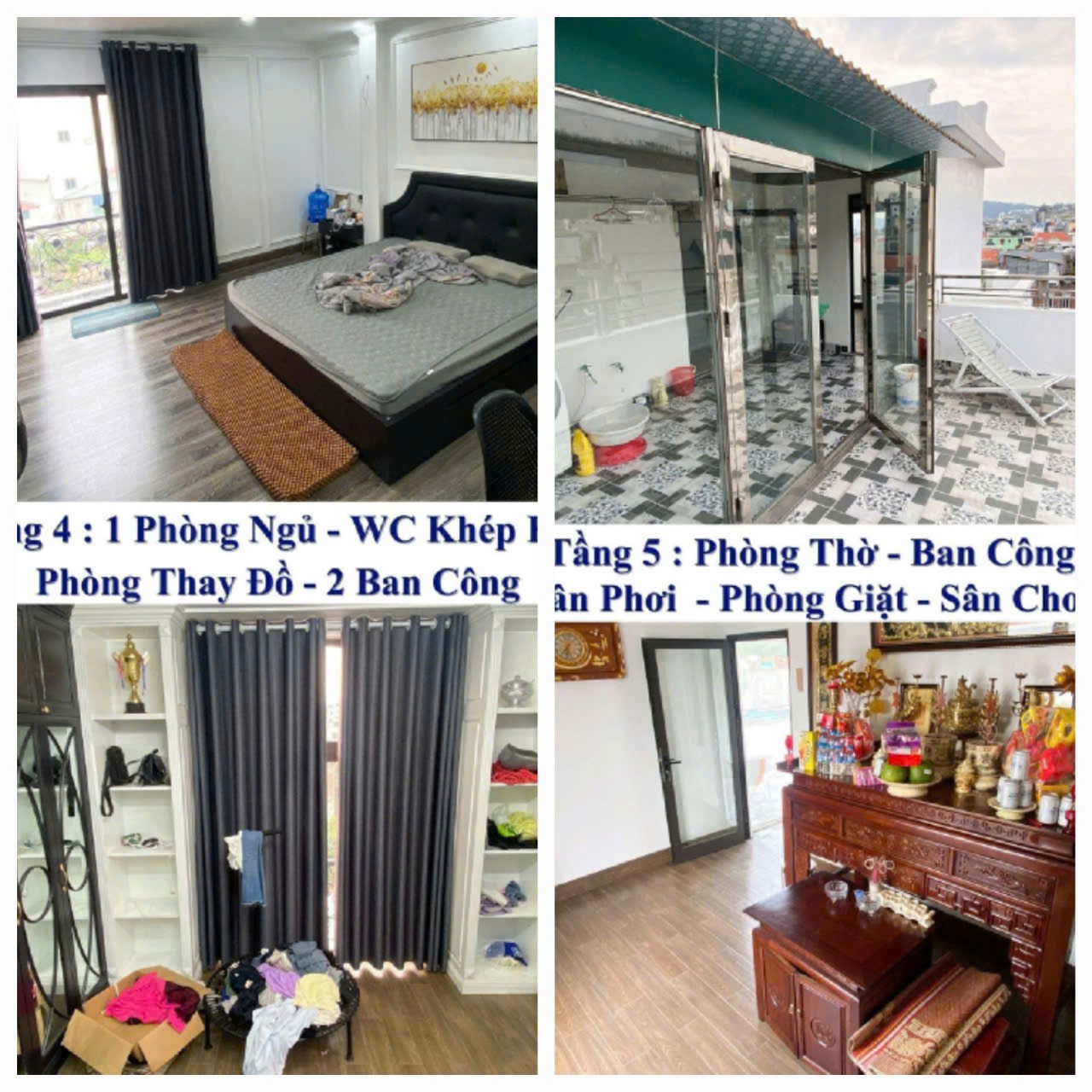 Tầng 4: 1 phòng ngủ wc khép kín, phòng thay đồ, 2 ban công
