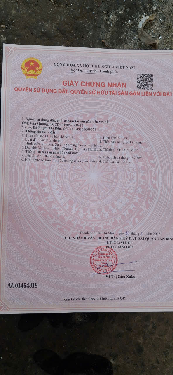 NHÀ ĐẸP – GIÁ TỐT – CHÍNH CHỦ CẦN BÁN NHÀ Đường Quảng Hiền, P.11, Q.Tân Bình, TP.HCM