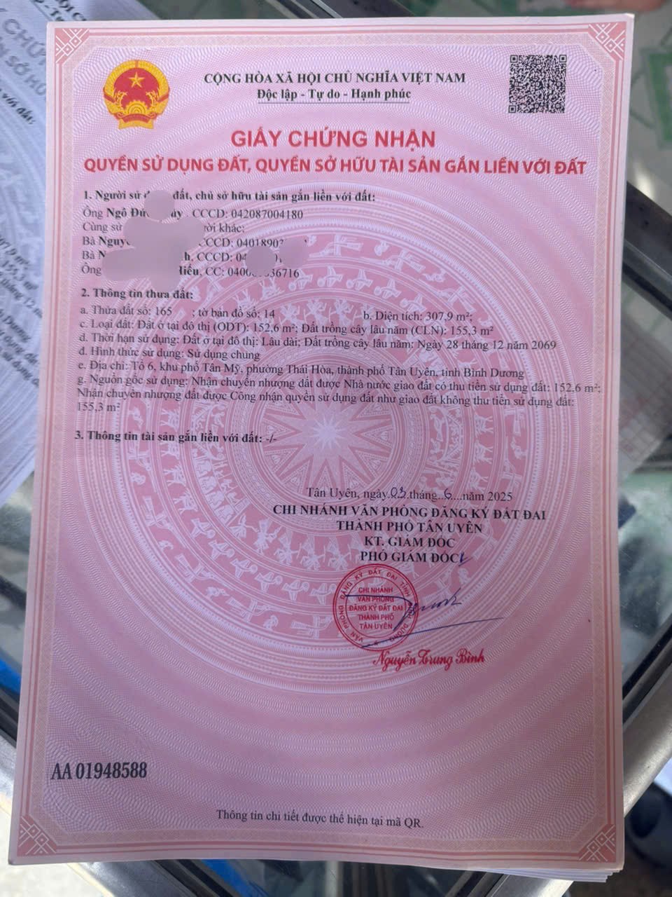 Mỗi người cầm 1 sổ đỏ.