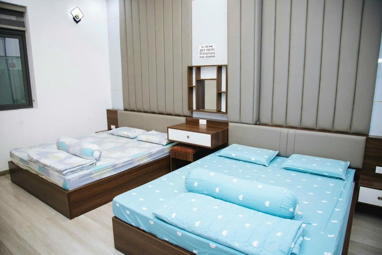 Kết cấu: 1 trệt, 2 lầu + 1 áp mái, tổng 6 phòng ngủ (4 phòng đơn, 2 phòng đôi), 6 WC; áp mái bố trí 2 giường rộng
