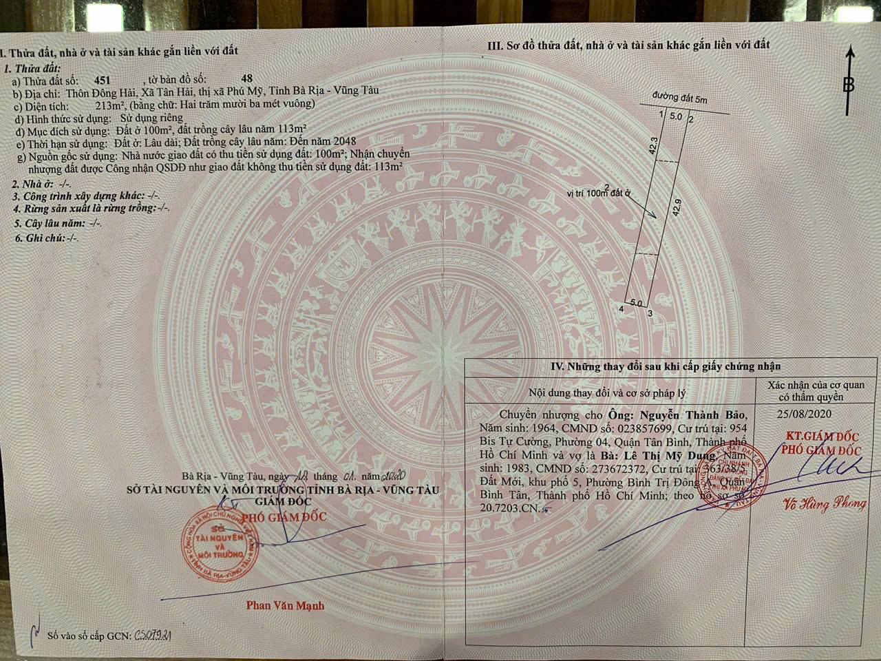 Diện tích 5x42,9x100 thổ cư khu dân cư