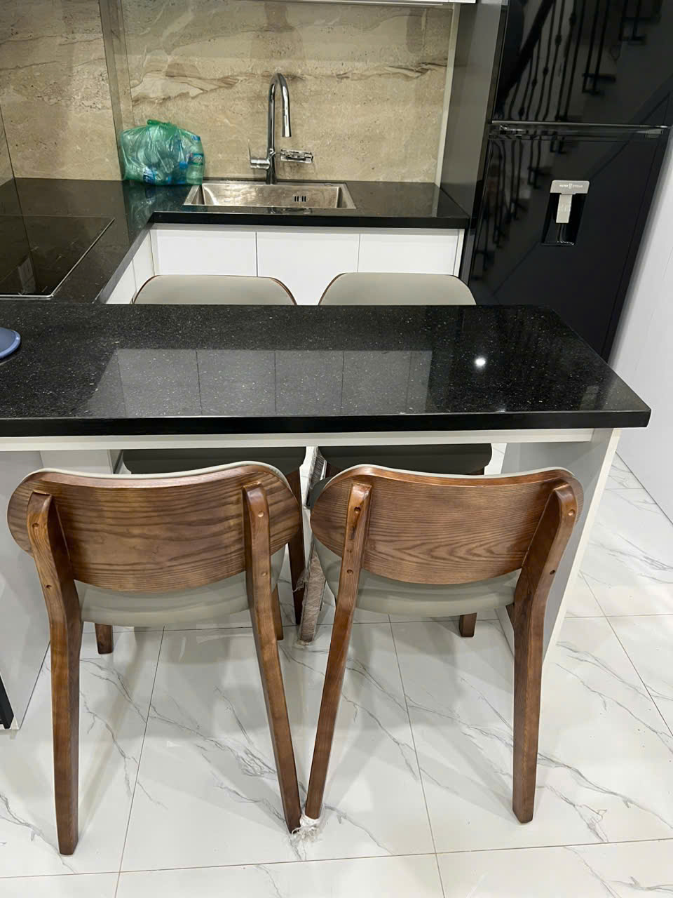 Tầng 1: Phòng khách sang trọng, bếp đá granite sáng bóng, trang bị nội thất hiện đại, đủ sức gây ấn tượng ngay từ cái nhìn đầu tiên.