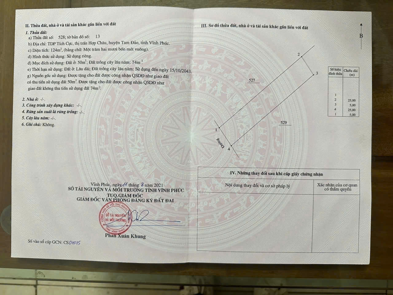 Diện tích: 124m² (50m² thổ cư) – Mặt tiền: 5m vuông vắn