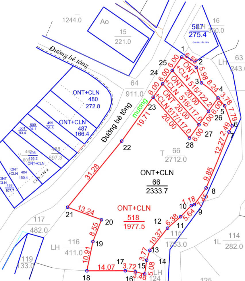 Diện tích: 117m2 và 122m2 có 80m thổ cư