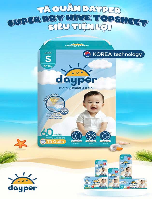Tên sản phẩm: Tã/bỉm quần Dayper đủ size - Super Hive Dry mới, thấm hút gấp 6 lần (+10 miếng) S60/M58/L52/XL50/XXL46